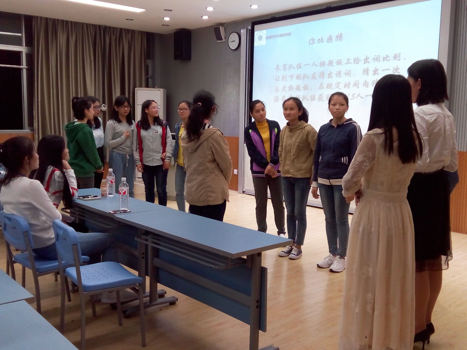 为了加强新招干事对地理学院分团委的全面了解,提高干事的综合素质,也为了加强各部门新生力量之间的关系和营造好的团队氛围。地理学院分团委于10月18日晚上七点半在文星楼401举办干事见面会,莅临本次见面会的有分团委副书记毕莉萍和各部门部长、委员,以及刚加入分团委的小干事们。