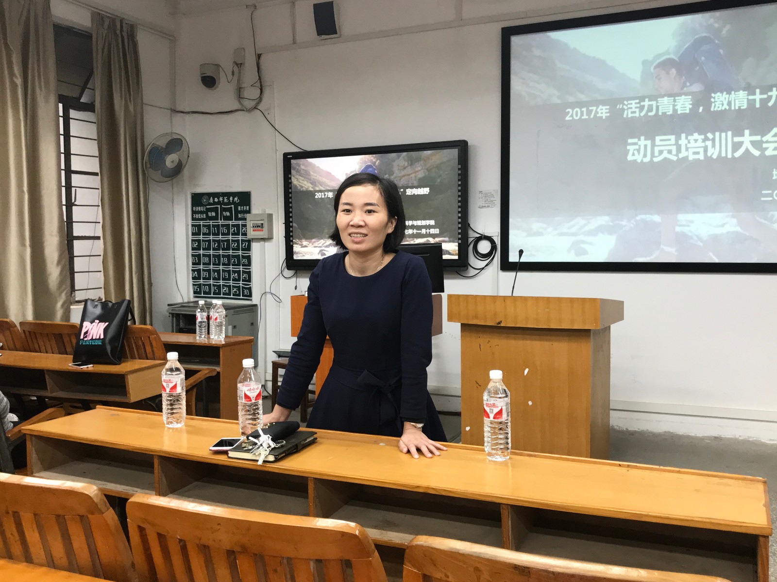 为了让参与定向越野比赛的同学更好地了解有关活动的过程和注意事项,地理学院分团委素拓部于11月14日下午四点十分在物大三教室开展了动员培训大会,党委副书记韦立立老师出席了本次会议。