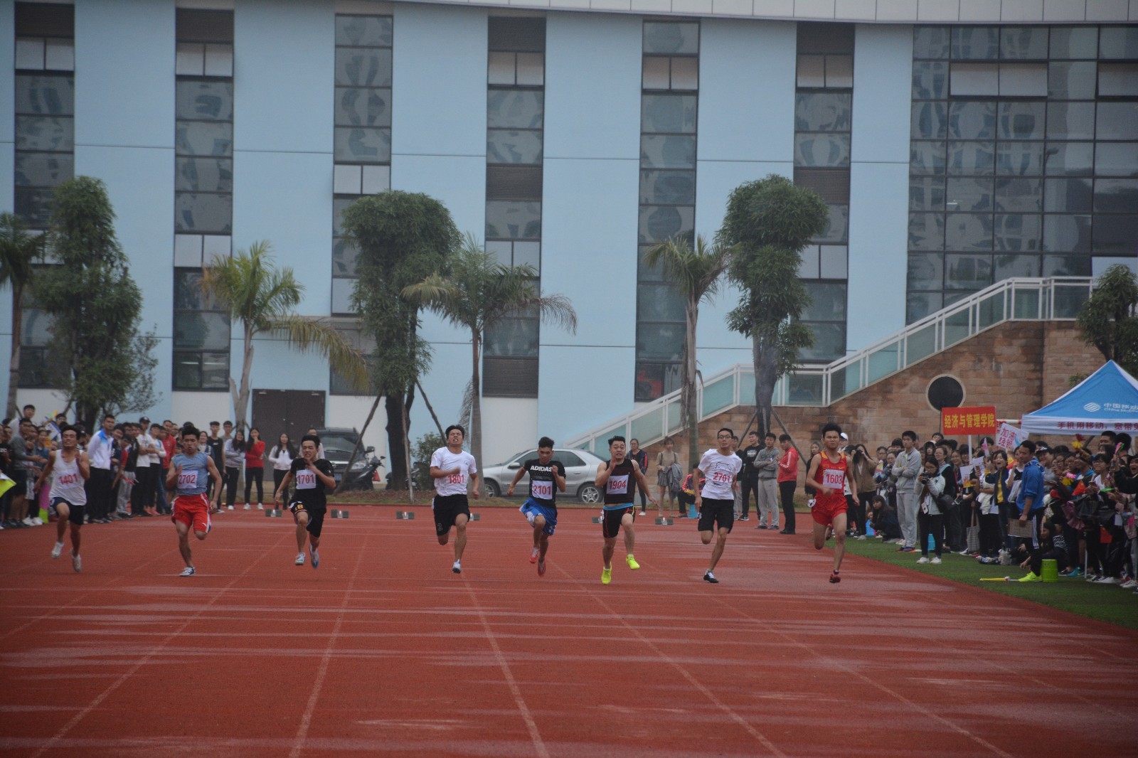 11月17日,运动场上的同学们依旧热情高涨,欢呼呐喊着。运动项目十分多样,比赛赛事万分精彩。分别有男女子200米,800米决赛,仰卧起坐,男子跳高,引体向上,4x100米初赛以及决赛。虽然赛程紧凑,但运动员们个个都表现出了极佳的竞技状态,每个项目上都赛出了精彩,赛出了风采!其中罗平在800米决赛时以令人惊叹的速度取得了全校第一名,莫晓晴在200米的跑道上获得了全校第六名,最令人兴奋的是我们学院获得了男女团体总分第八名,教工组获得了广西师范学院第三十六届体育道德风尚奖第二名。
