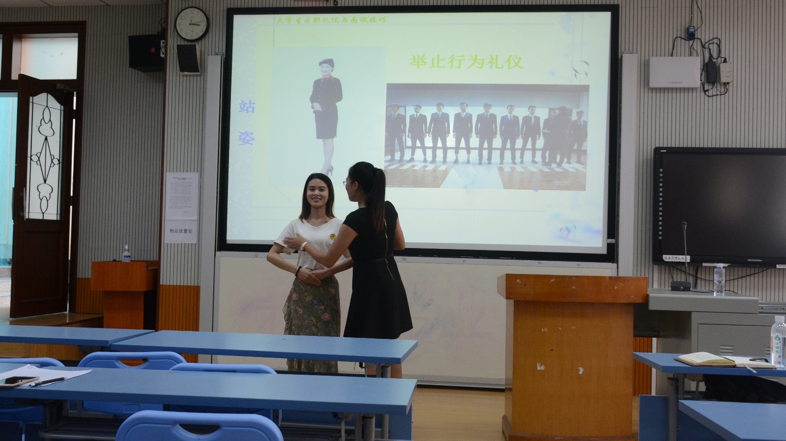 讲座中,黄海嫚老师分别从面试着装、面试的行为礼仪和如何应对面试官的问题等对求职与职场礼仪,面试技巧方面进行了详细的讲解。同时,黄老师还通过情景模拟邀请学生上台互动、亲身示范等方式将求职面试过程中所需要注意的细节传达给学生,使得同学们全程参与度很高,现场气氛活跃。