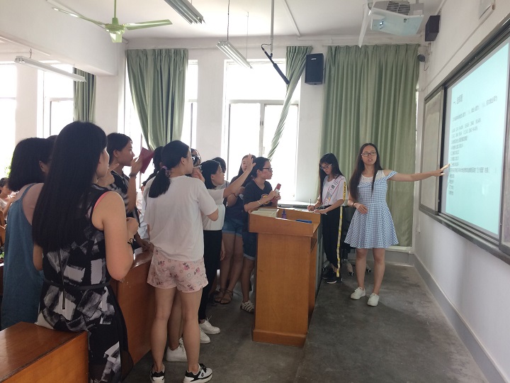 在主持人宣读完比赛规则后,全班分成八个小组,开始了第一轮比赛,在各个组长的带领下,每个组都给自己组起了一个响亮的名字,随后进行抽签,按1组和5组、2组和6组、3组和7组、4组和8组两两PK的形式,对以评估手册和2014地理科学专业本科人才培养方案等材料为出题背景的题目进行了问答和抢答。经过第一轮比赛选出了四强,进入复赛。四强按抽签的形式进行两两PK,四强的实力不相上下,在组长和各个组员的配合下,中二少年团和热力无限组以微弱优势领先进入决赛,淘汰的两队中进行再度PK,胜出的队伍将有机会进入最后的决赛,最终火力hold住组胜出。