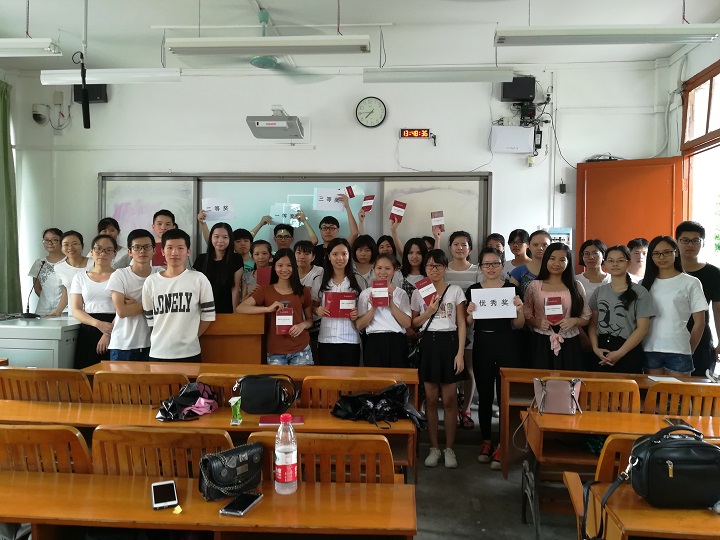 2014级地理信息科学班2017年4月25日下午12时50分于思远楼304教室开展了“本科教学工作审核评估应知应会”的主题政论课。本次政论课内内容包含“评估知多少”知识竞赛初赛和决赛,开始主持人向同学们介绍了关于本科教学审核评估的意义与目的,导入主题。在这次比赛中分为七个小组,每个组派出一名同学参与抢答,遇到不懂的可以向组员求救。在比赛开始后,每一位组员都集中注意力听主持人讲比赛题目,以至于能快速的想出答案,经过激烈的初赛后,我们得出了进入决赛的小组。紧接着我们进入了大家期待已久的决赛,在这轮比赛中,同学们比之前更加的积极了。最终,第三小组以最高分夺得了一等奖,第七组取得了二等奖;第一组取得三等奖;第五组取得了优秀奖。