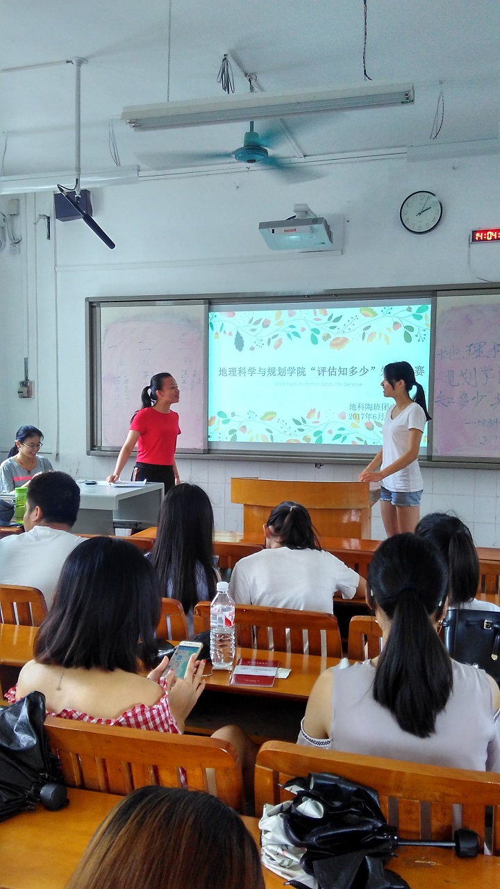 为积极迎接本科教学工作审核评估工作,6月13日下午两点,15陶班全体同学在教学楼302开展“评估值多少”竞赛活动。本次竞赛活动内容包括:学校简介、地理学院简介、地理科学专业简介、2015年地理科学专业本科人才培养培养方案以及本科教学工作审核评估应知会学生版手册。
